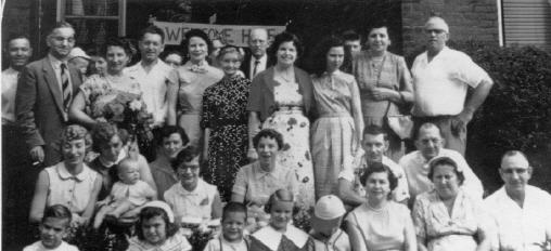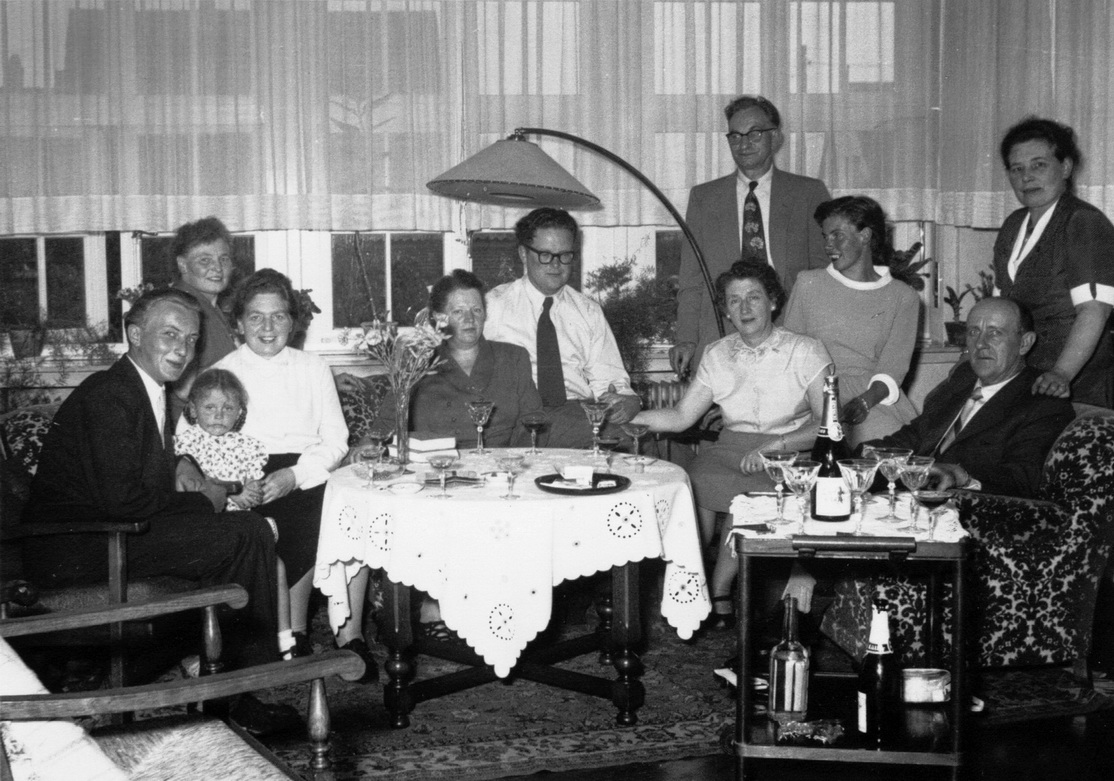 v.l.n.r.: Strothmann - Hermine Strothmann geb. Schumacher - Annegret Hermans - Liesel Schnermann geb. Schumacher - Hanny Schnermann geb. Thobe - Hans Hermans - Josepha Schumacher geb. Thobe - Ernst Schumacher - Hildegard Hermans geb. Schnermann - Franz Schnermann - Berta Lange geb. Schumacher